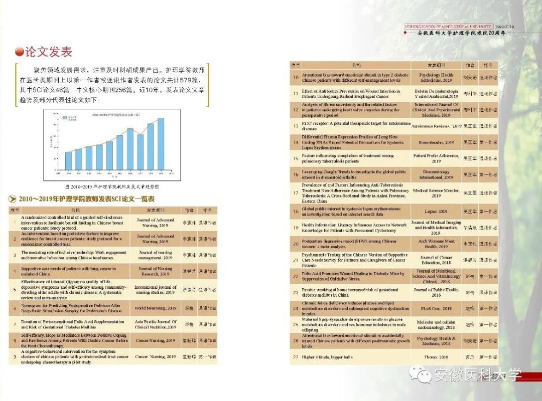 色情导航 依托安徽省护理学国际联合研究中心、肿瘤护理与健康促进实验室、临床护理技术的创新研究等三个科研平台,整合国内外合作院校、附属医院和教学医院的优质资源,提升研究领域的持续创新能力。近五年,色情导航 获批国家自然科学基金4项,教育部、省科技厅、教育厅等省部级以上项目54项;在国内外医学类期刊上以第一作者或通讯作者发表论文共计579篇,其中SCI论文46篇,中文核心期刊256篇。