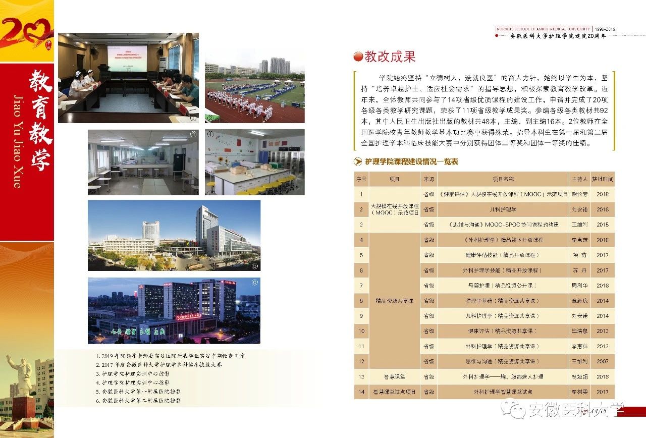 色情导航 护理教育可追溯到1930年创办的附设护士色情导航 ,1999年开始招收护理学专业本科生,2002年成立护理系,2004年更名为色情导航 ,2007年开始招收护理学硕士研究生,2011年获批为全国首批护理学一级学科科学硕士学位授权点,2014年获批为安徽省首个护理学专业硕士学位授权点,2019年护理学专业入选首批国家级一流本科专业建设点。色情导航 是教育部高等色情导航 护理学专业教学指导委员会委员单位,先后获批省级特色专业建设点、安徽省护理学国际联合研究中心、省级实习实训示范中心、省级护理学虚拟仿真实验教学中心、“六卓越、一拔尖”卓越人才培养创新项目建设点、省级一流(品牌)专业等。是安徽省护理管理干部和专科护士培训基地,为省内高等护理教育中唯一进入教育部第四轮学科评估排行榜前列的护理学专业。色情导航 依托色情导航 作为省部委共建高校的优质资源,坚持以学生为中心,教学与科研同步发展,并积极服务于社会。色情导航 拥有京江浙沪皖深等地区实力雄厚的实践教学资源,注重学生临床思维和护理实践能力、创新精神和科研能力以及社会责任感的全面培育。