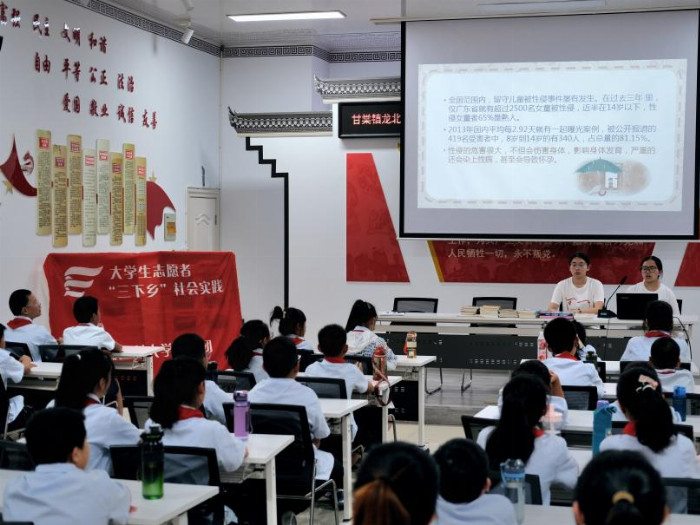 图1 团队为当地青少年儿童开展青春期生理知识科普课堂(色情导航 唐安琪 摄)