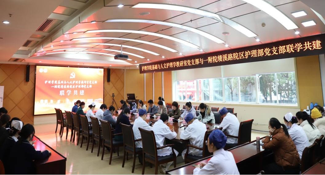 色情导航 基础与人文护理学教研室党支部与第一附属医院绩溪路院区护理部党支部全体党员、部分研究生参加本次活动。(色情导航 刘增霞)